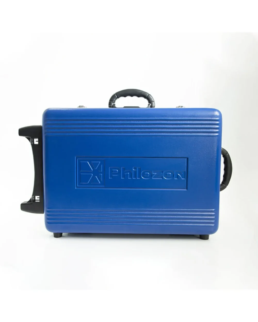 Proteja e transporte seu Gerador de Ozônio Philozon Medplus One e Dental com o Case Transporte com Rodinhas. Fabricado em fiberglass resistente, com rodinhas e alça retrátil para facilitar o transporte. O gerador oferece concentrações de ozônio de 1 a 65 μg/mL com ajuste de fluxo automático, seguindo protocolos científicos internacionais. Garanta a integridade do seu equipamento de Ozonioterapia.