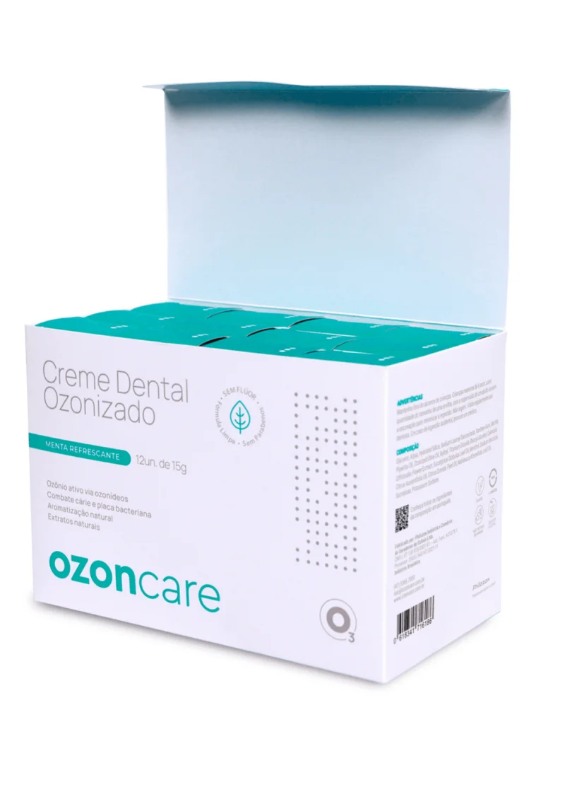 Experimente o poder do Creme Dental Ozonizado Sem Flúor em uma caixa com 12 unidades. Formulado com tensoativos extremamente suaves e eficientes que podem ser usados inclusive por pessoas com dentes e gengivas sensíveis.
