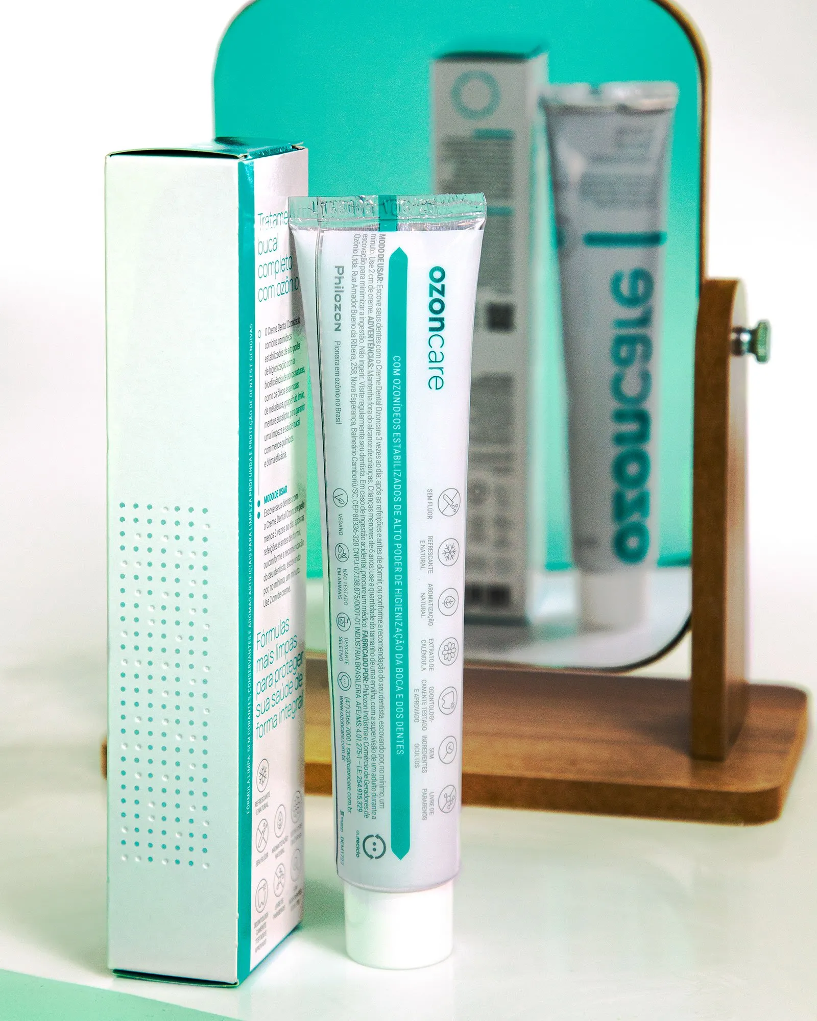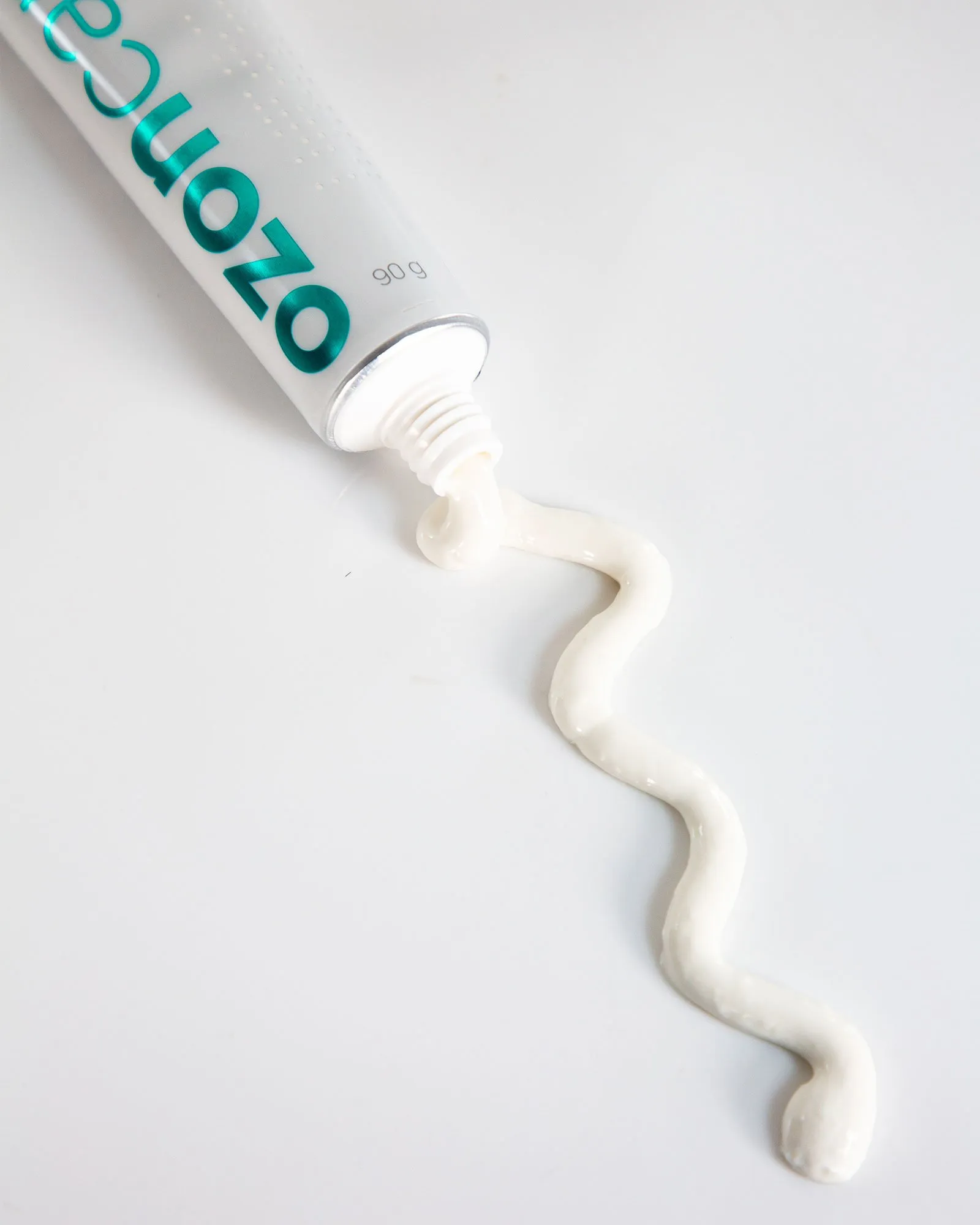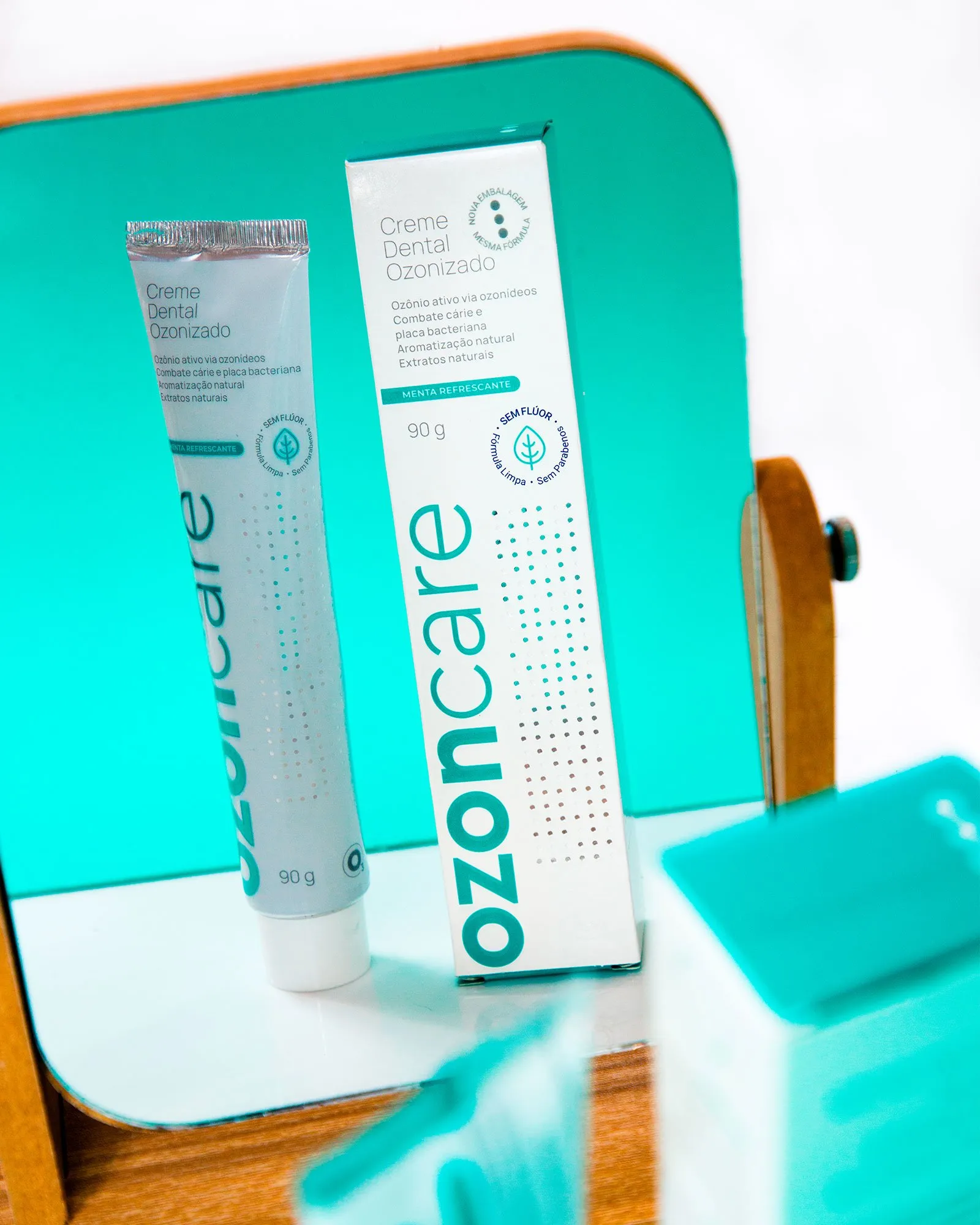 O Creme Dental Ozonizado Sem Flúor é ideal para dentes e gengivas sensíveis, oferecendo proteção natural, sulfatos ou parabenos. Com óleo ozonizado, combate microrganismos e auxilia na recuperação dos tecidos orais, promovendo gengivas e dentes mais saudáveis.